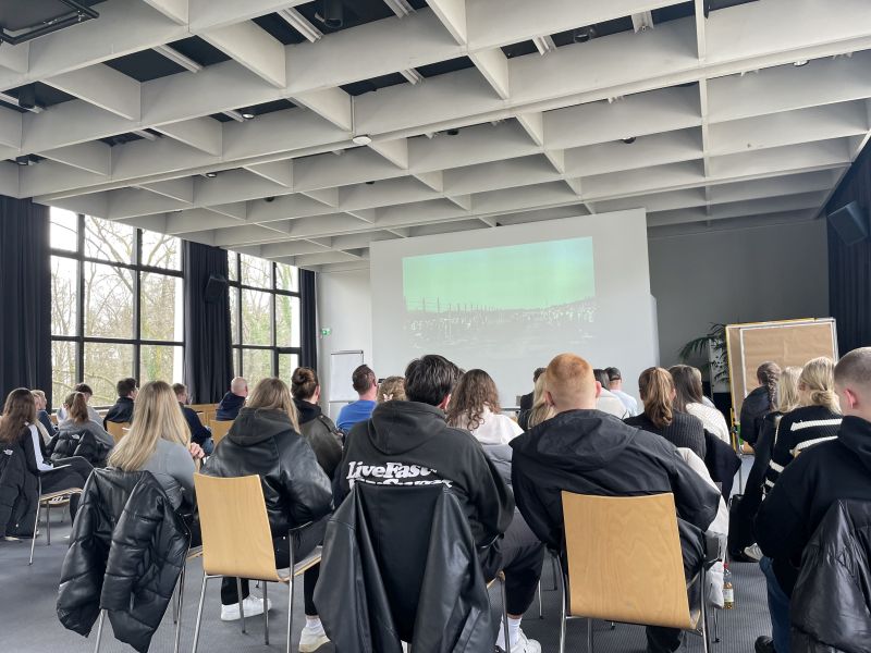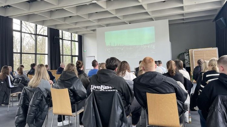 In Kleingruppen entwickelten die Teilnehmenden eigene Podcasts und Kurzfilme zu selbstgewählte Themenschwerpunkten. Von der Recherche über die Erstellung von Drehbüchern und Skripten bis hin zu Aufnahme und Schnitt wurden alle Schritte von den Schülern und Schülerinnen selbst gestaltet. Begleitet wurden sie dabei von drei Teamern von Haus Neuland, sowie von Dorian Klinner aus der Gedenkstätte und Volksbund-Bildungsreferentin Lena Wiele. Am zweiten Projekttag wurden die Medienprodukte im Haus Neuland fertiggestellt und in der Großgruppe präsentiert.