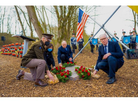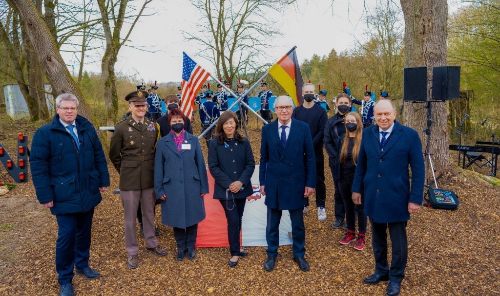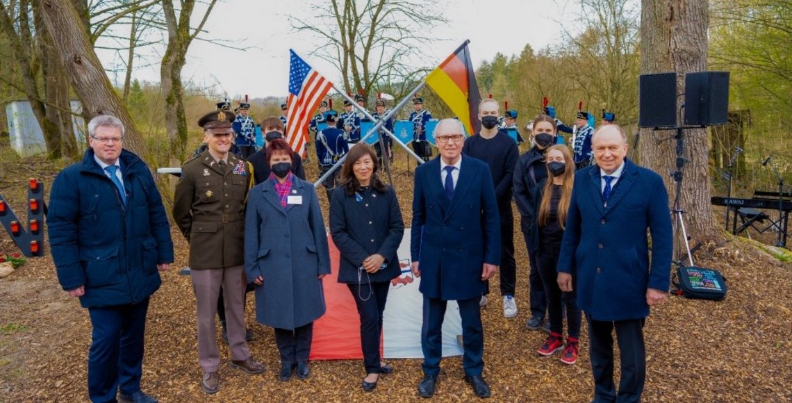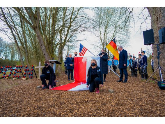 Landrat Christoph Rüther und die amerikanische Generalkonsulin Pauline Kao, die sich gerührt von der starken Erinnerungskultur in Deutschland zeigte, betonten die Bedeutung der deutsch-amerikanischen Freundschaft auch in der heutigen Zeit und die Zusammenarbeit in Bündnissen als Stärke der westlichen Wertegemeinschaft. „Wie wertvoll Frieden und Freiheit sind, wird durch diesen Gedenkstein symbolisiert“, so Landrat Christoph Rüther. Der Krieg in der Ukraine und das damit verbundene Leid „treffen uns alle ins Mark“. Mit Blick auf die Flüchtlinge aus der Ukraine, die aktuell im Kreis Paderborn ankommen, erklärte Christoph Rüther: „Als Landrat bin ich dankbar und stolz angesichts der Willkommenskultur in unseren Städten und Gemeinden!“