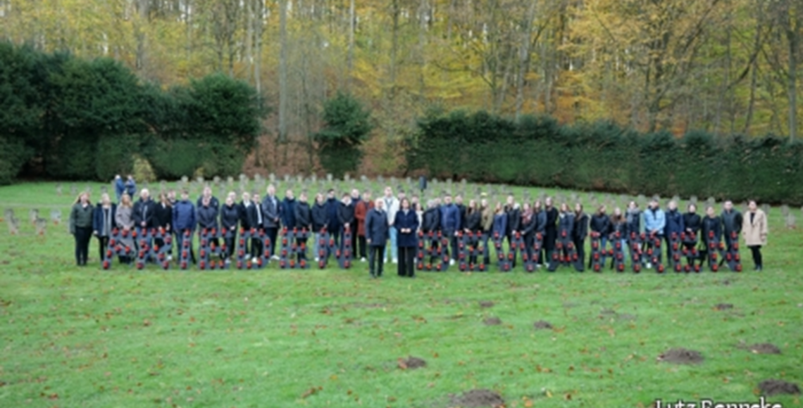 Auch dieses Jahr fand am Volkstrauertag eine Zentrale Gedenkfeier auf der Kriegsgräberstätte Büren-Böddeken statt. Die traditionelle Veranstaltung stand wie gewohnt unter der Schirmherrschaft des Volksbundes Deutsche Kriegsgräberfürsorge e.V. sowie des Kreises Paderborn. Etwa 500 Teilnehmer versammelten sich im sogenannten „Tal des Friedens“. Unter ihnen waren auch 80 Auszubildende des Kreises Paderborn, von denen einige Chrysanthemen als Zeichen für die Totenandacht auf den „Jubiläumsgräbern“ niederlegten. Auf dem Soldatenfriedhof haben einige Verstorbene ihre letzte Ruhe gefunden, die in diesem Jahr 100 Jahre alt geworden wären. Die 16 Namen verlas Historiker Norbert Ellermann.